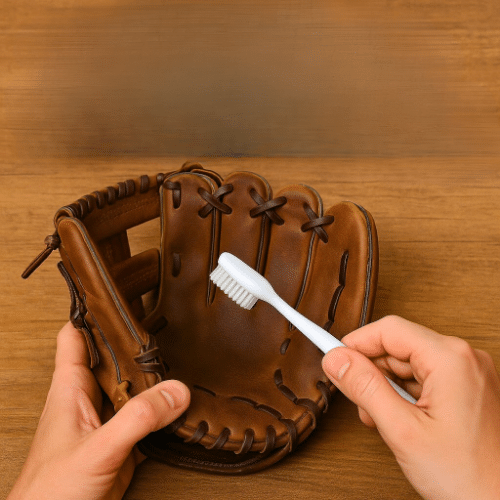 Regular household soaps contain detergents that strip leather oils — not good. Baseball-specific cleaners are balanced to clean without drying out the glove.